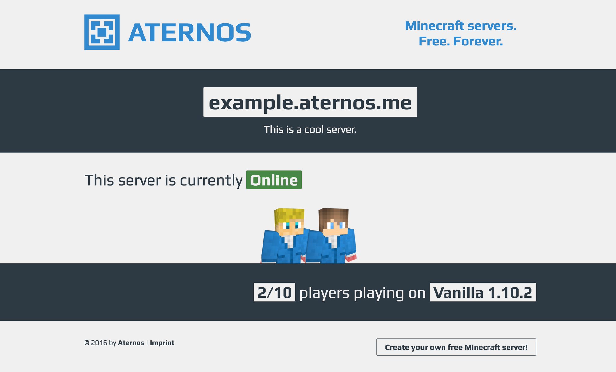 In this tutorial, i am going to be showing you how to get a free minecraft server with no downloads! Aternos is a completely free website that lets you play on your server 24/7, just a. I agree that my personal data is stored and processed according to the privacy policy. Feb 29, 2020 · i'll be showing you guys how to make a minecraft server with aternos.org. For the original survival multiplayer experience. You can do so by going to their website. Nov 18, 2017 · me and a small team of people are making an aternos minecraft server that we plan on eventually advertising and opening to the public, however this would be very difficult to pull of if we had to wait in the queue every time we want to continue working on the server, or if players just want to play. Combine the power of mods and plugins to get the best of both worlds. I made this video mainly because i have a series of minecraft manhunt videos that btw i. Once you have created an account, you need to hit the play button at the bottom right of your screen. Expand your smp experience with plugins or create your own minigame server. Mar 18, 2019 · tutorial on how to create your own minecraft server. Feb 13, 2021 · in this video i show you how to make a free minecraft manhunt server.
